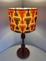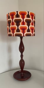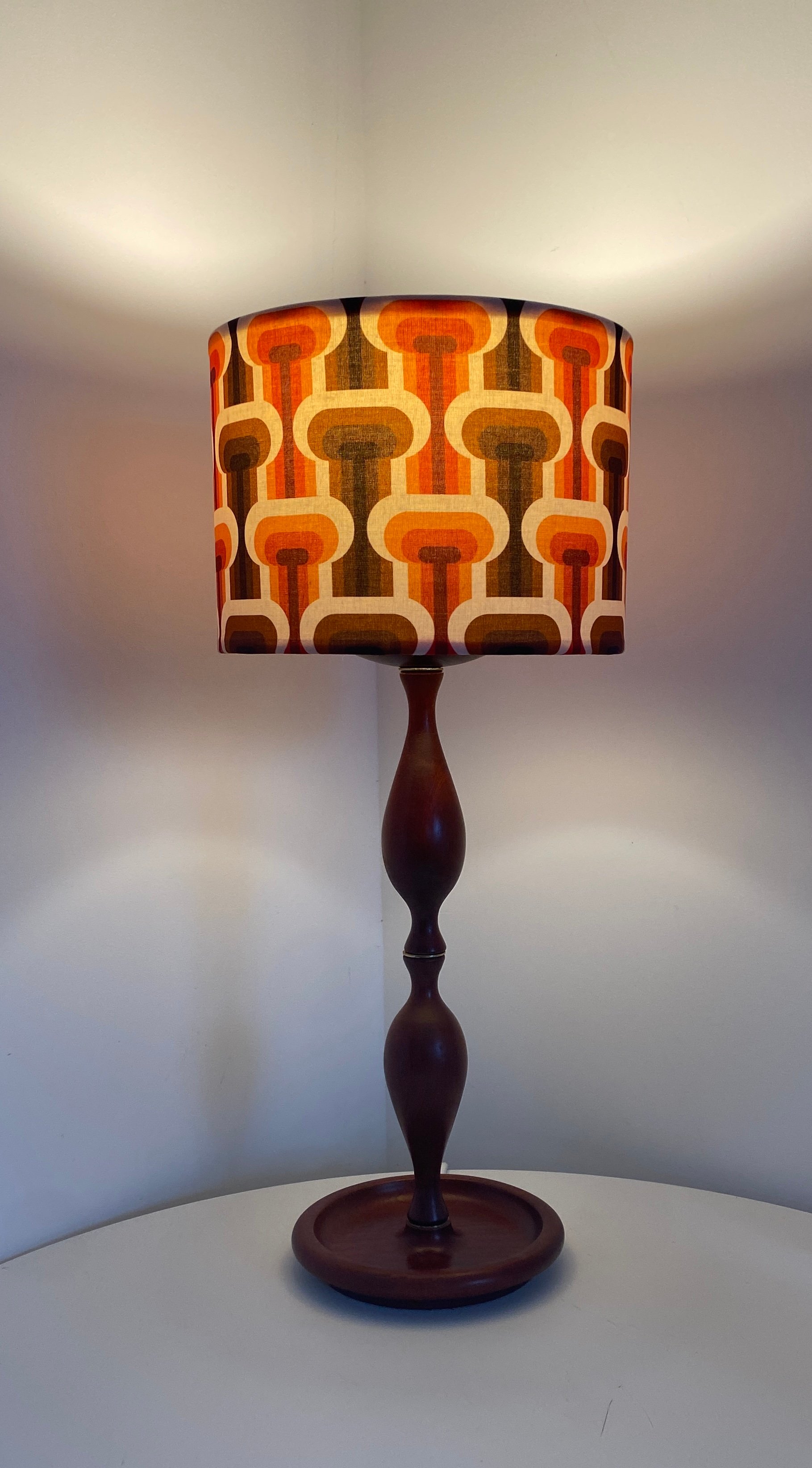 Pre loved base an original 70's stained wood with pre loved shade and newly re covered by me in replica 70's cotton fabric