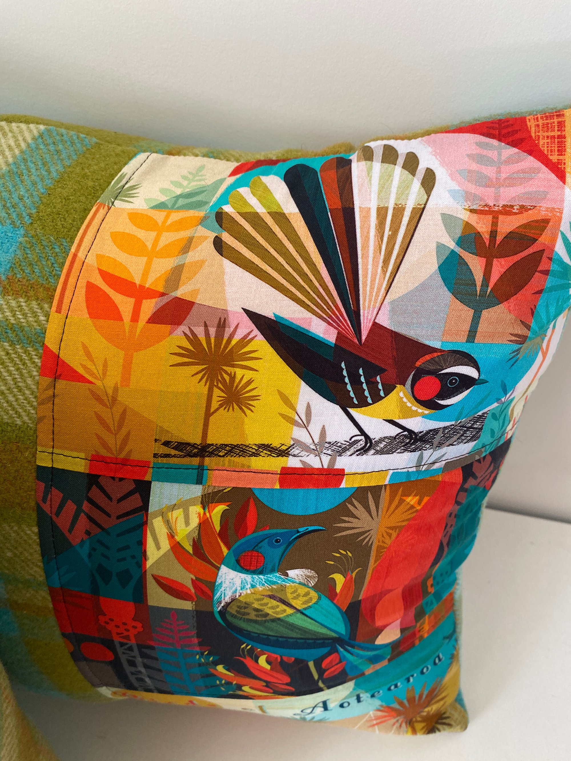 Made using nz made wool blanket and nz designer bird cotton